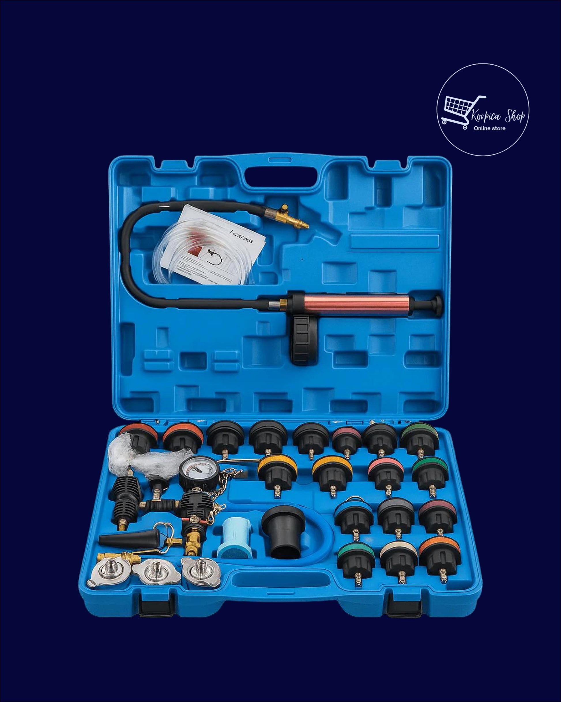 Od testiranja tlaka do servisa i punjenja — sve to u jednom setu.