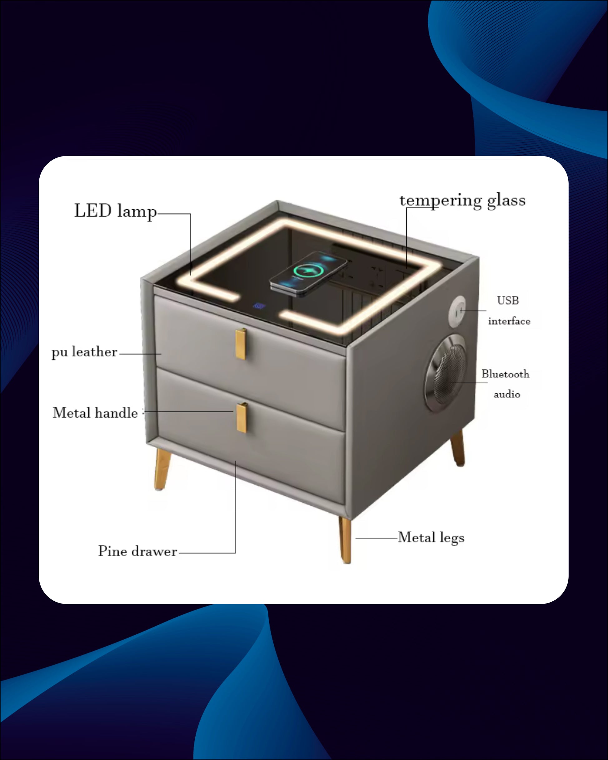 Dizajniran za one koji cijene spoj luksuza i tehnologije, Deluxe Moderni Pametni Noćni Ormarić donosi revolucionarno iskustvo u vaš dom. Više od običnog komada namještaja, ovaj sofisticirani ormarić nudi niz inteligentnih funkcija koje unapređuju svakodnevni život, pružajući praktičnost, estetiku i naprednu tehnologiju u jednom.