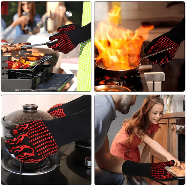 Rukavice su napravljene od materijala koji podnosi visoke temperature, sprečavajući bolne opekline i omogućavajući vam sigurno hvatanje vrućih predmeta. Idealne su za: